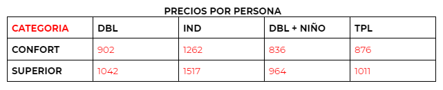 En caso de que la llegada sea posterior a las 19:00 horas la cena del primer día no estará incluida.
