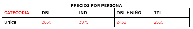 PAQUETE PLUS    $925 pp